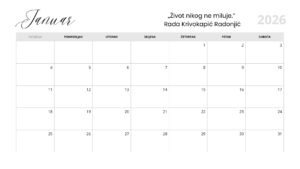 Januar 2026 Kalendar Rada Krivokapic Radonjic G&M