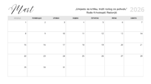 Mart 2026 Kalendar Rada Krivokapic Radonjic G&M
